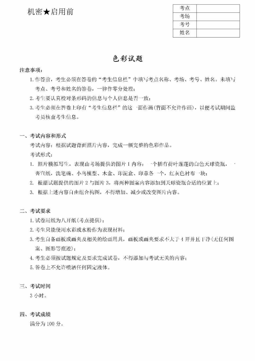 色彩考題