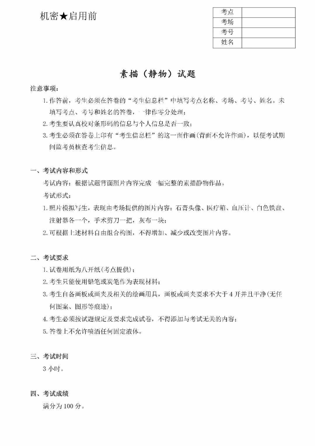 素描(靜物)考題