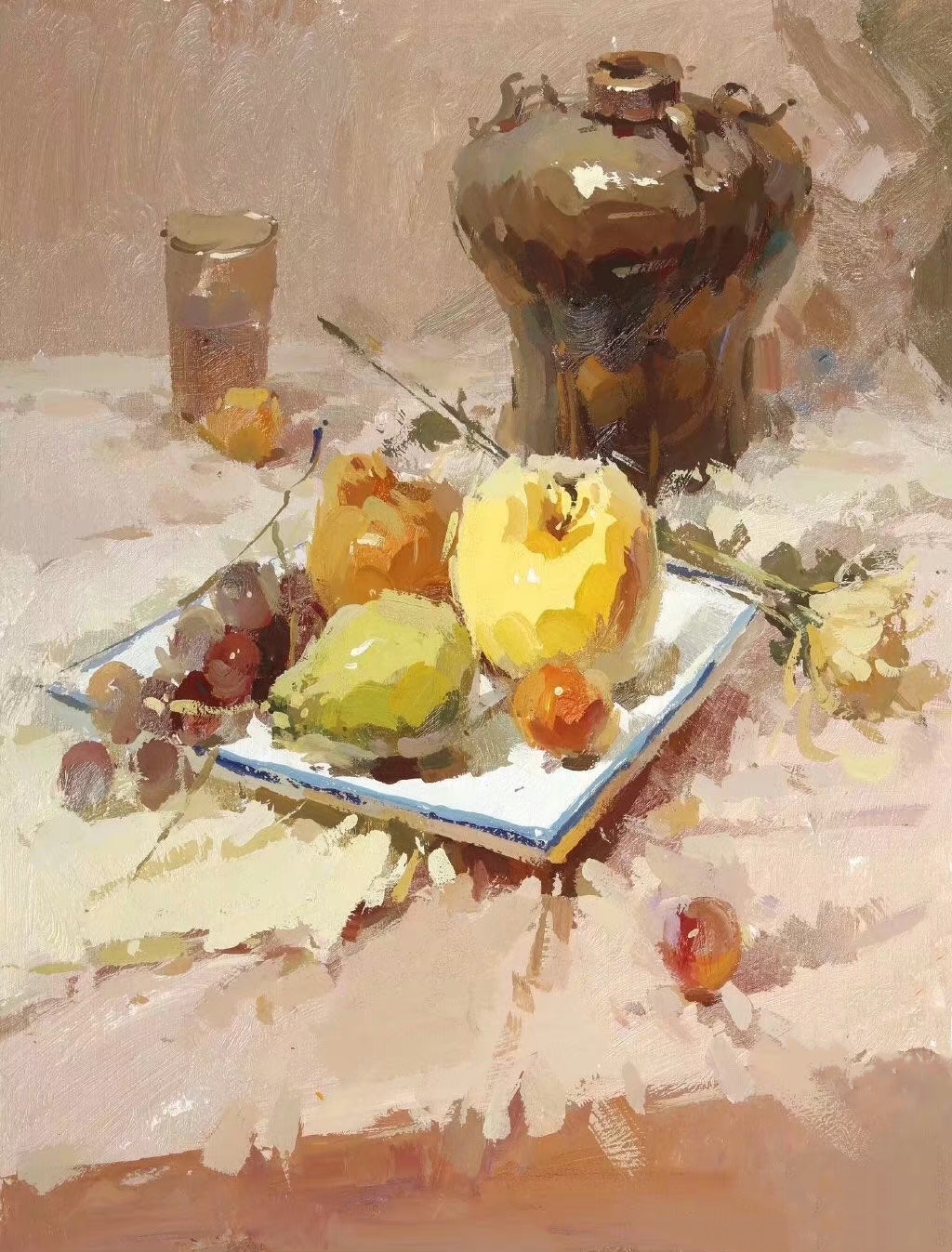 3.布紋和水果和瓶子形成三種層次,拉開(kāi)每個(gè)物體的空間,色調(diào)高級(jí)畫(huà)面響亮。